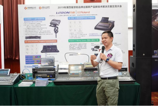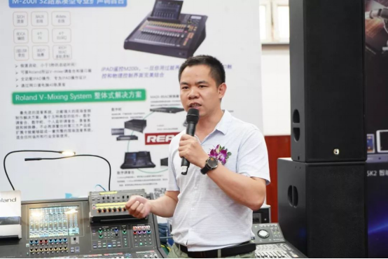 力創(chuàng)技術總監(jiān)詹遠英就羅蘭調(diào)音臺使用進行了簡單的介紹,針對羅蘭調(diào)音臺優(yōu)勢及特點向來賓們詳細解析,讓大家對羅蘭調(diào)音臺有了更深入的了解,同時也對我們的產(chǎn)品更加信賴。