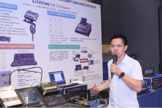 力創(chuàng)昕業(yè)技術(shù)總監(jiān)詹遠(yuǎn)英先生,現(xiàn)場(chǎng)就Roland數(shù)字機(jī)調(diào)音臺(tái)的功能及特點(diǎn)進(jìn)行了簡(jiǎn)單介紹。并向來(lái)賓對(duì)產(chǎn)品的使用中的便捷進(jìn)行詳細(xì)解析。使現(xiàn)場(chǎng)來(lái)賓對(duì)Roland調(diào)音臺(tái)有了更加深入的了解。