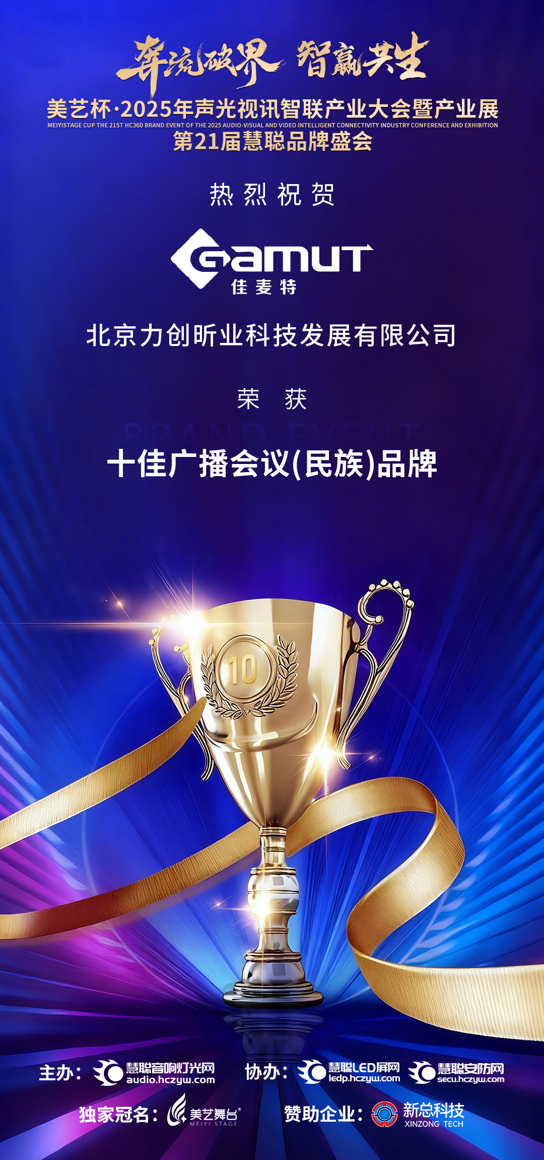喜報(bào) | 力創(chuàng)昕業(yè) GAMUT(佳麥特)斬獲 "美藝杯?2025 十佳廣播會(huì)議(民族)品牌"